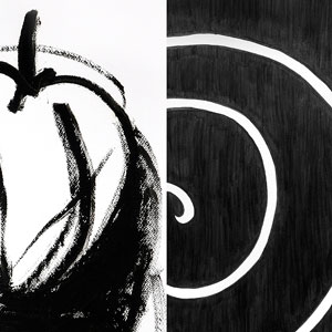 A utilização da grafite e do óleo em barra provocam resultados de expressividade bem definida e de efeitos visuais sedutores.